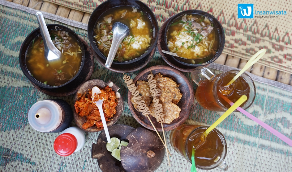 Lokasinya berada di Jalan Candi Sambisari, Sleman, Yogyakarta. Dari namanya, tentu sudah ketahuan. Saoto atau soto di sini disiram ke dalam wadah yang terbuat dari batok kelapa. Semakin nikmat disantap dengan ditambah perasan jeruk nipis, kecap manis, dan sambal. Yang jadi favorit kami ialah hidangan pendamping tempe goreng dan aneka sate. Tempe yang diiris tipis-tipis digoreng kering, rasanya gurih dan renyah, apalagi setelah dicelup ke dalam kuah soto. Aneka satenya ada sate usus dan sate telur puyuh yang agak manis karena dibumbu bacem. Sebathok soto sapi berkuah bening ini harganya hanya Rp5.000,00. Tak hanya soal rasa dan penampilan, menikmati soto di gubuk bambu berlatar sawah dan Candi Sambisari pun membuat suasana semakin nyaman.